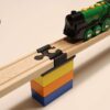 Durch die Adapter ist es möglich den unsanften Winkel am Fuß der Brücke zu umgehen und die Gleisbauteile sicher auf den Stützen zu befestigen. Dank der Unterseite, welche kompatibel mit den Duplo-Steinen ist, steht die ganze Brücke fest und sicher, bei jedem Einfluss.